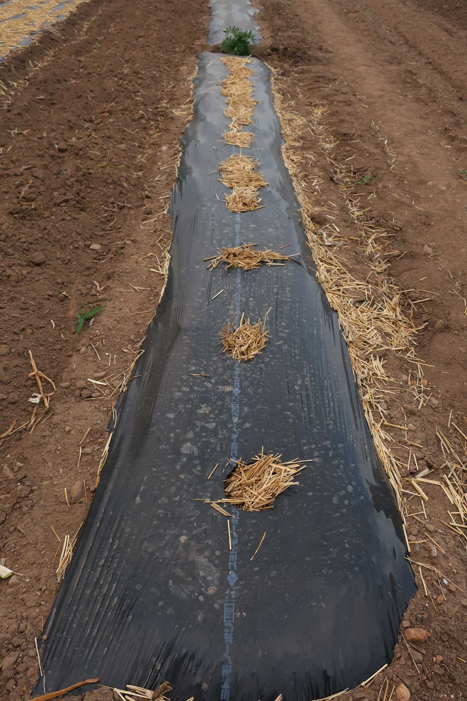 人参は種を蒔いて薄く覆土し、切った藁を蒔いておいた。