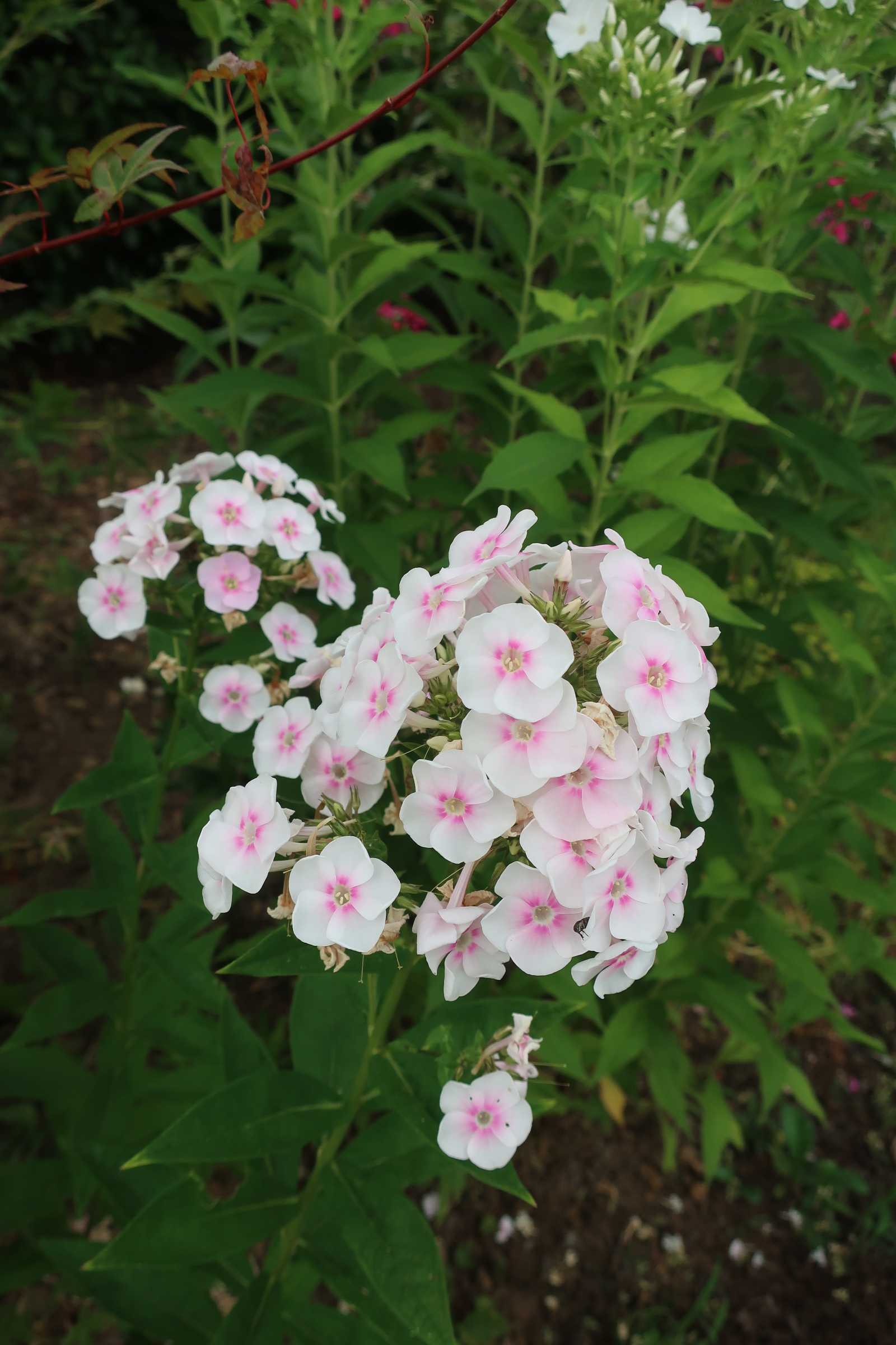 その後宿根草ガーデンに植えた赤紫も咲き、その次に咲き出したのが、このピンクのフロックス。