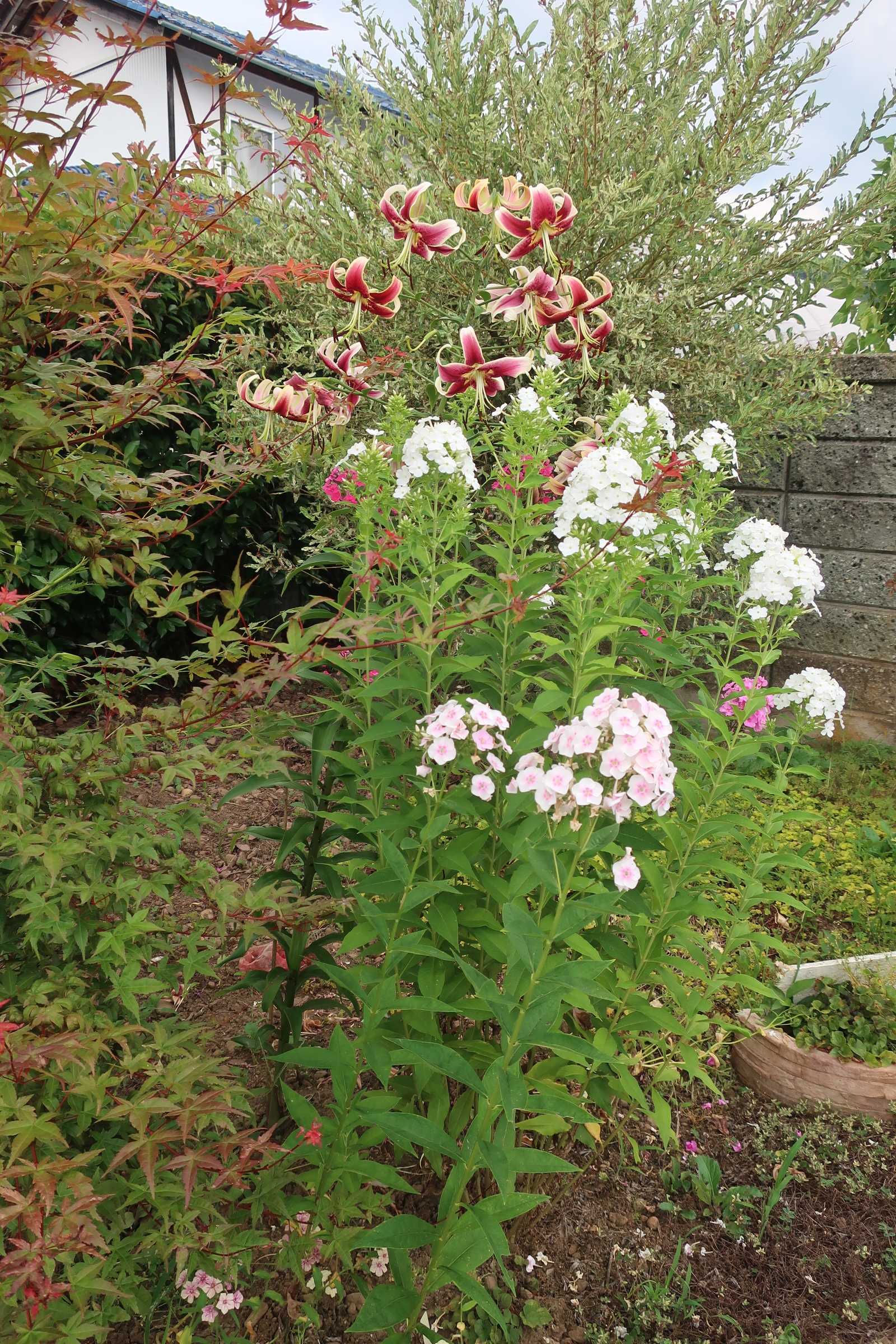 百合のシェヘラザードと一緒に、宿根草ガーデンを華やかにしている。