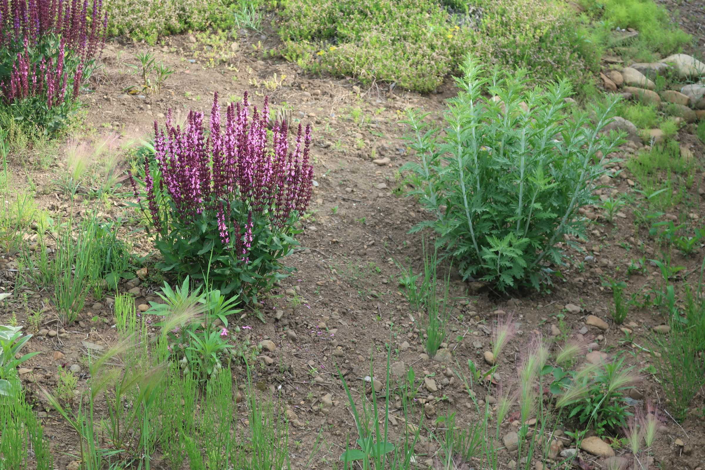 ロシアンセージとサルビア・ネモローサ(零れ種でピンクになった株)