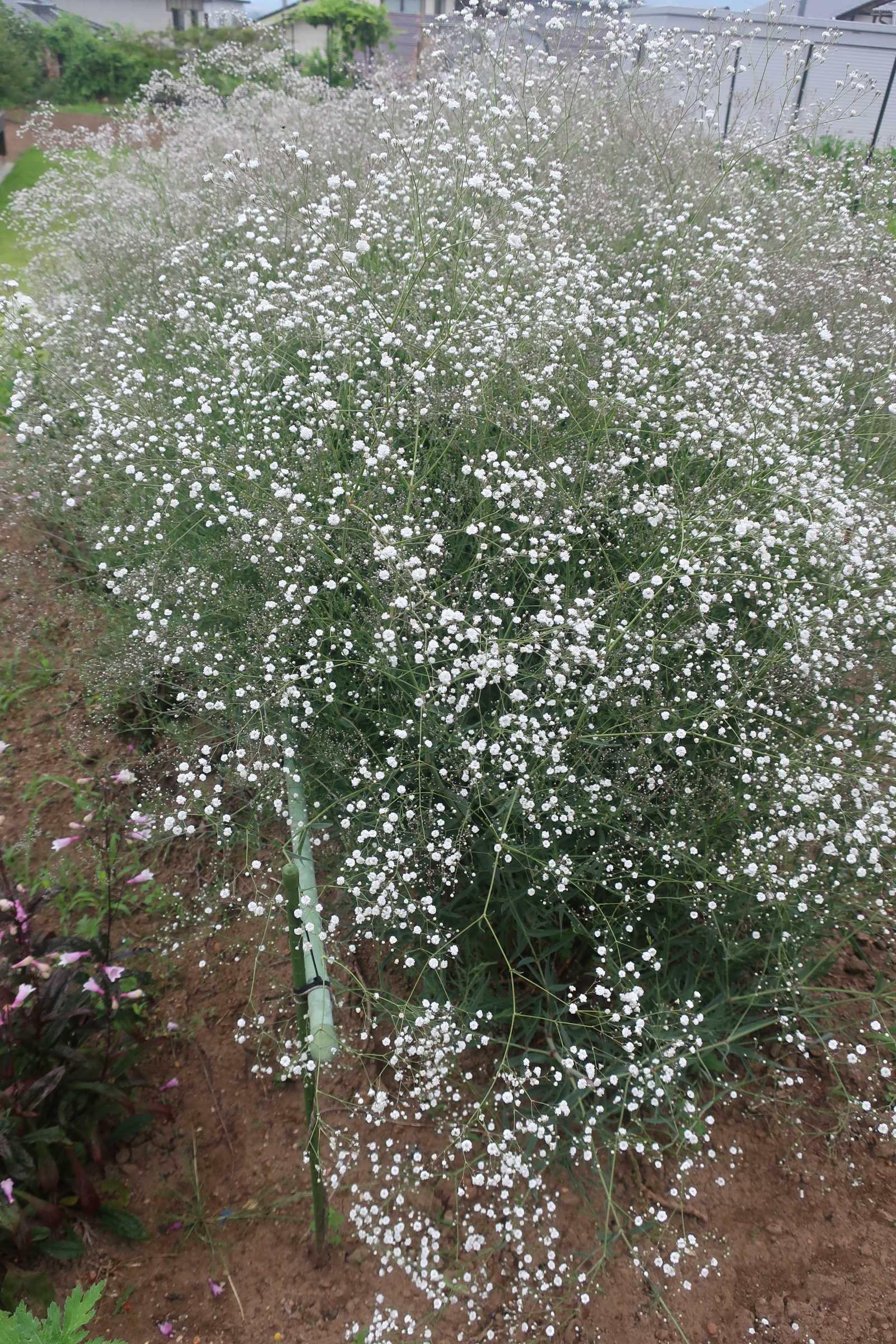 雨で倒れやすいカスミソウ。 泥で汚れないうちにと、朝方写真を撮っておいた。