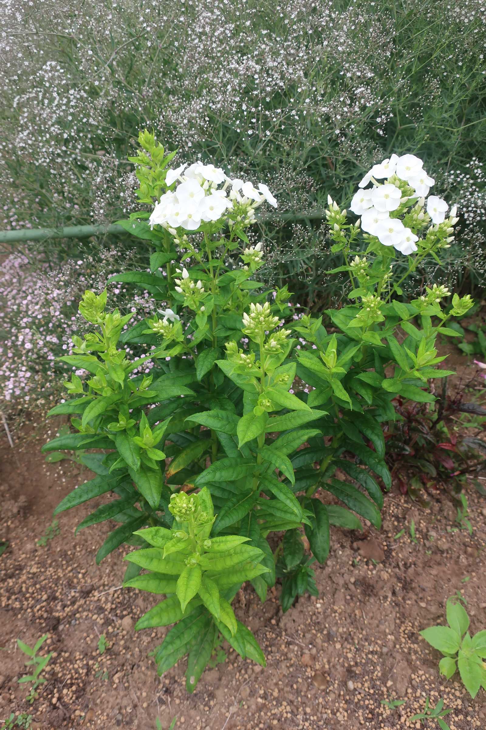 ここのフロックス・ジェイドは、他のフロックスより早く咲く。 今年で2年目の株立ち。