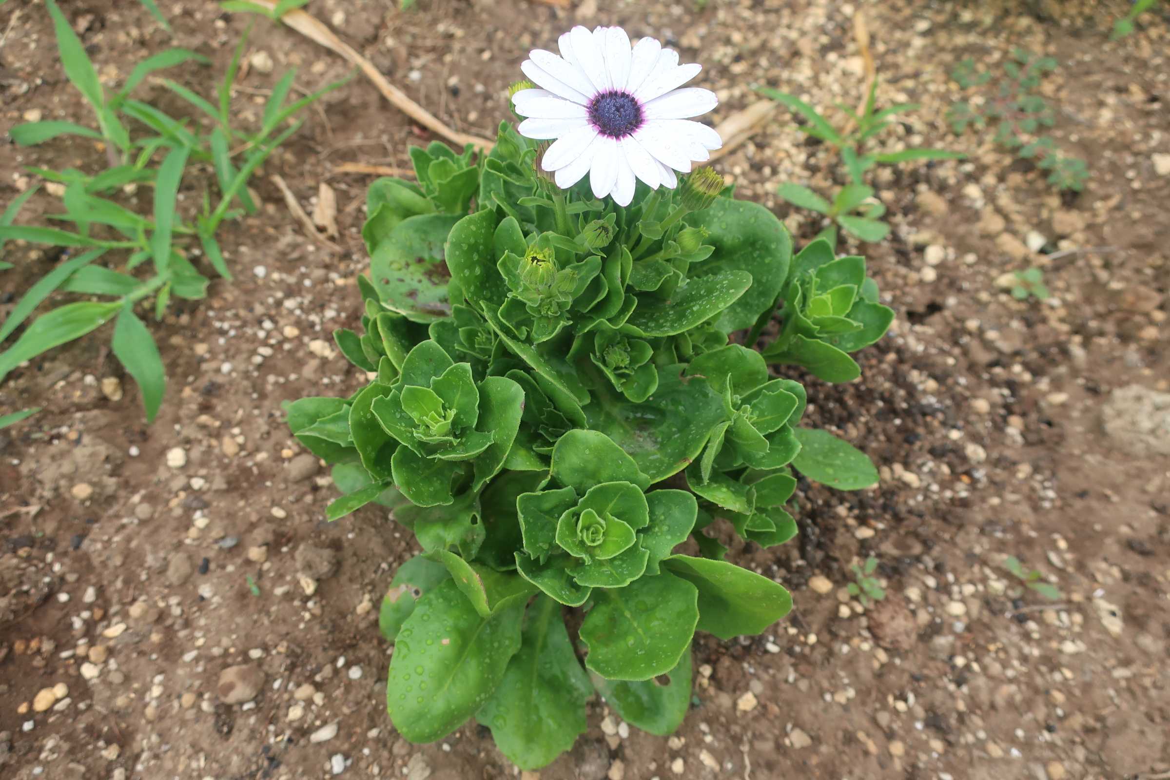 このオステオスペルマムは挿し穂のじゃないの。 何と零れ種から1本だけ生えてきたの。 (1枚目の写真の、他のオステオは挿し穂)