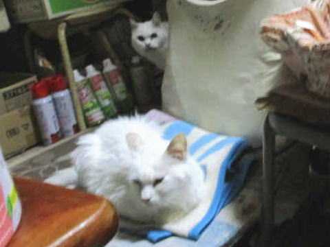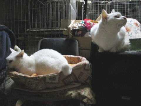 ユキ♀スチール棚下の箱の中、すのこの間から何を見てたの~?