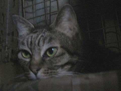 ロンボー上の天♂上にある猫じゃらしが、エアコンの風で揺れてるのを見てるかな?
