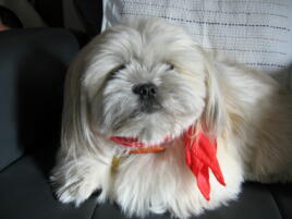 今日は夕方近くになってからですが河川敷の公園で思いっきり走ってきました☆ドックランではありませんが、平日はほとんど人もいませんのでノーリードで思いっきり走る事ができます♪チワワの親子を連れてる方に会いました。お母さんはステキなドレスを着て優雅にちょこちょこ後からついてきます。一応リードをつけている子はまだ小さい男の子♪球太に興味深々なんです。球太は初めはよかったんですが、怪しい動きとちょっと吠えもし・・・^^;結局『いいコ!』な球太はあの日だけだったような。。。。(;⌒▽⌒Aでも、一緒に遊べてよかったです♪ボール遊びは外では初めてできましたよ^^;(家の中では大好きなのにね)いっつもボール投げても知らん顔してたから~( ̄▽ ̄*)ゞたくさん走って喉が渇いたわね☆「楽しかったね♪」by球太土の所でまたすりすりしてしまったので顔も真っ黒け!帰ってすぐにシャンプーです。最近ライトフードのせいもあってか、毛質がちょっとてごわごわ気味。新しくちょっといいシャンプーに変えてみました。おお!いいですねぇ!!でも・・・ふわふわで・・・身体がもっと太って見えるんですけど(≧∇≦)!!
