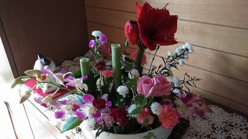 「仕上げまでが早かったおかげで、11月21日のリースは生花にする話をし」