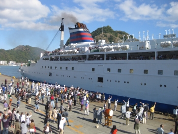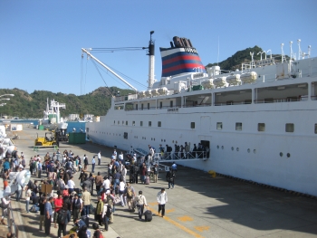 揺れました。それもハンパない大揺れです。二見湾を出てすぐアネロンを飲みひたすら寝ていましたが、横揺れ(船の進行方向に対しては縦揺れ?私は船内にいるとひどい方向音痴です☆)は時間を追うごとにひどくなるいっぽう。普段はゲームとかして元気な息子も早々に寝てしまいました。 夜中の3時すぎだったでしょうか、どーーん!と波が当たる音で目が覚めました。横揺れに加えて縦揺れが始まり、ローリングするような動きに身体が前後左右に持っていかれます。5時を回った頃にもがーん!と大きな揺れがあり、身体が引きずられて「きゃ!」と声を上げてしまいました。差し入れのコーラが転がり、立てかけた荷物が倒れ、けど直しに起き上がることができません。やばい、酔うかも…!なんとか助かったのはアネロン様のおかげ? 朝7時、レストランの朝食営業に替わりサンドイッチ、おにぎりなど持ち帰り用の軽食を販売する旨の放送が入りました。案内所からの放送によれば強い北西の風で海上模様が大変悪く(はい、それは感じてます…)減速航海をしているそうです。見れば現在14~16ノット。竹芝到着は3時間半遅れで19:00とのことでした。頑張っておが丸、私達も耐えるから…。 正午すぎになると揺れが幾分ましになり、ようやくトイレに立てました。お友達が焼いて持たせてくれたパンをひと口ぱくり。食べやすい大きさとほんのり甘いサツマイモのペーストが嬉しくて、なんだかじ~んときちゃいました。おが丸は速度が出てきたらしく、竹芝入港予定時刻は17:40に早まりました。さあ、もうひと眠り。 乗船時間は27時間半を越えましたが、2つめのアネロンは飲まずにすみました。竹芝で下船したのは17:50近く、外は真っ暗。ぎょさんの足に夜風が冷たく「内地にきた!」って感じがします。息子は学校と担任の先生に無事到着の電話連絡。島から遠く離れての受験ということもあり、要所要所で連絡を入れるルールです。 荷物が多いためタクシーで新しい家に向かいました。ダンナ君の話によると竹芝からワンメーターで着くはずとのことでしたが、道を知らない運転手さんに当たってしまい980円かかりました。家の近くで降り立つと…あ、Googleストリートビューで見た景色!建物はネットの写真より綺麗に見えます。間取り図でしか知らなかった新居の第一印象は「狭いけど暮らせそう♪」ってトコでしょうか。 ダンナ君の仕事が終わるのを待って、田町~芝浦を3人で見て歩きました。三田に住んでいたことがある私には懐かしさもあり、驚きもあり。ファミレスで夕食を済ませて帰ってきてからガスが使えないことが分かり(先日開栓してもらって使えてたのに…)業者さんに来てもらうハプニングもありました。24時間対応だなんてすごい!島ではちょっとしたトラブルでも担当者不在とか部品取り寄せのため何便か待つようなことが珍しくないため、妙に気が長くなってる自分に気づいて可笑しくなりました。 ネット環境がまだ調わないため、しばらくは携帯からの日記更新となります。コメントへのお返事等すぐできないこともあると思いますがお許しくださいね。