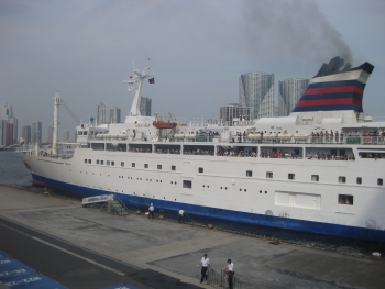 おが丸が竹芝桟橋に帰ってきました。昨日は予定より約18時間遅れて早朝5時半に父島へ入港、そのまま9時にあちらを出て今朝は10時20分ごろに東京に到着。もともと着発運航の期間中で予定がタイトですから取り戻すのは大変なのでしょう。午後にはまた父島へ向けて出港とあって、乗客の下船後は大急ぎで荷役を済ませ回航していきました。ターミナルの外では高校生や小学生の団体さん3つが解散式を行なっていました。整然と並んでいたのはたぶん上水高校、輪になって座っていたのがハーモニィセンター、出迎えの親御さんも多くて一番にぎやかだったのがそらまめキッズの子供達と思われます。そらまめキッズのみなさんは「なんようおどり~!」の決めポーズで盛り上がっていたので、思わず父島の南洋踊り仲間にメールで知らせてしまいました(^_^)小笠原の旅がいい想い出になってくれると嬉しいです。父島へ向け出港するおが丸いったん帰ってお昼ご飯を食べてから、2時にはまた竹芝へ。本来なら今朝10時に東京を出るはずだった便が午後3時半に出港します。この便は早めの夏休みを終えた島民や里帰りの島っ子、元島民などいわゆる帰島の人がたくさんいて、とても楽しい見送りでした。父島はカラッとした暑さで快適らしいですね。みなさん、島の盆踊りを楽しんでください♪テレビ番組のお知らせです。明日放送のNHK夏の特集番組内で小笠原の話題があります。わが家はどうしても外せない番組とダブるためワンセグ録画で見る予定。番組:「ちょっと変だぞ日本の自然」(NHK総合)日時:8/10(水)19:30~20:45内容:新型生物誕生SP番組ホームページによれば各地で続々誕生している「新型生物」が今回のテーマで、小笠原諸島については巨大化するオカヤドカリが取り上げられるようです。アフリカマイマイの殻を借りるうち大きくなっちゃった…とか?ちょっと面白そうですよね。【7倍】夜間に強い双眼鏡です!★ナイトビジョン双眼鏡 Nashica ナ...価格:7,980円(税込、送料別)★ ★ ★ 今日の一品 ★ ★ ★小笠原での自然観察のお供に、見やすく明るい双眼鏡はいかがですか。肉眼の51倍(!)の集光力で夜間に抜群の威力を発揮します。夜行性のムラサキオカヤドカリやオガサワラオオコウモリ、星空観測に役立つかも♪by eplusアルファランキング参加中!にほんブログ村