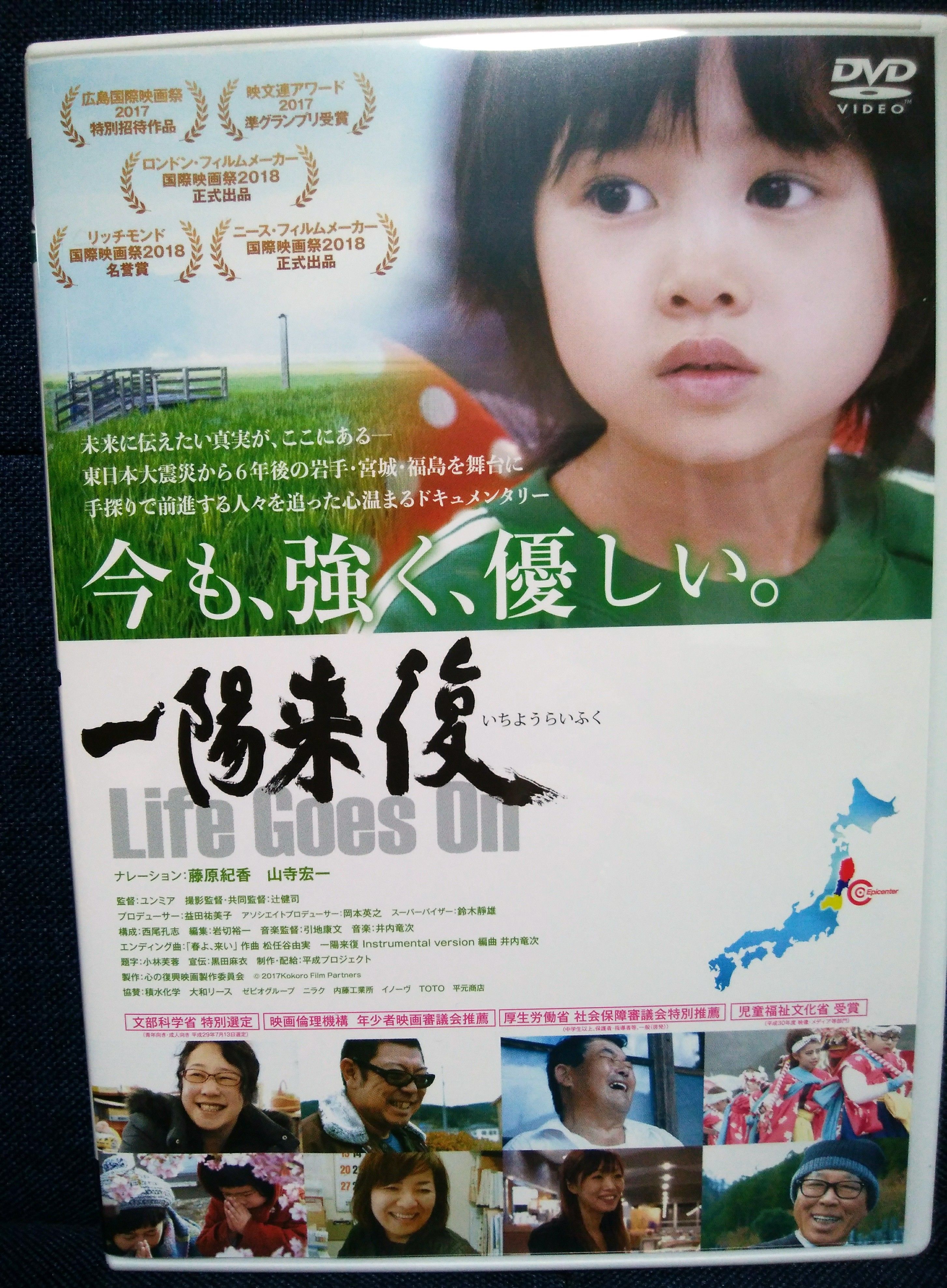 今日は寒い一日でしたねこの寒さは高齢者には辛いものですね特養に入所している義母の状態も秋からあまり良い状態ではなく電話に怯えています・・・・やっとこの映画の事を書けます「一陽来復」とは 故事ことわざ辞典によると冬が終わり、春が訪れること。また、不遇のときが続いた後、幸運に向かっていくこと。3・11の東北震災から6年目の昨年映画の撮影が始まり今春に完成しました映画「一陽来復」私の住む所では上映会がなかったのでDVDが発売されたので購入いたしました縁があって震災以降毎年のように東北に伺っていますこの映画の中には自然の脅威と向き合い自然に癒され人も命も大きな生命体の中にあることを思い知らされます南三陸のホテルに泊まり穏やかな海が見えるお風呂につかりましたカモメがすぐそこにいる真っ暗夜に月明かりに写る海ここに住む人達に絶望に与えた穏やかな海大きな変化が何を気づかせてくれるかそれを知る悲しみの後には希望が見えてくる語ることがなければ心は癒されません