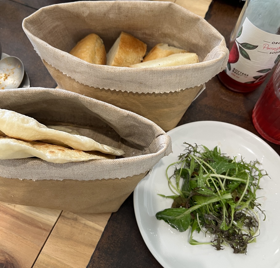 フォカッチャもお店で焼いたもの・地場野菜のベビーリーフ