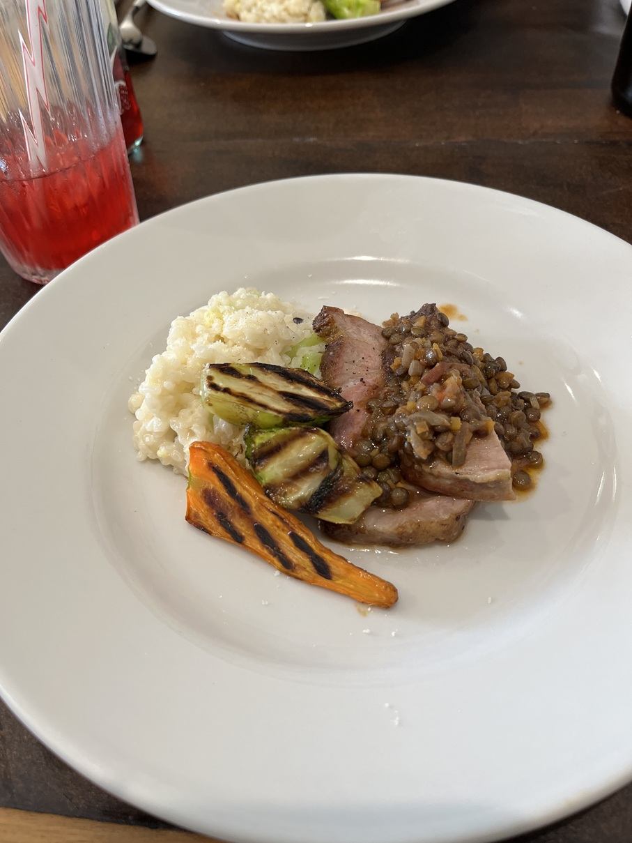 手前がスープ・レバーのパテ・福井サーモンとトマトのマリネ・さつまいものオレンジ煮・サラダ