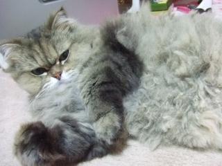 近所に住んでる猫。洗濯ものがなかなか乾かない季節がやってきた今朝も大量の洗濯をしたけど、前回洗濯したのが干されたまんま 小雨の降る中、ゴミ出しに行って戻ってきたら玄関の前に、顔見知りの猫いつもうちのベランダの前の駐車場で、ひっくり返ってお腹を見せたりして うちの大ちゃんを誘惑している飼い猫だから近づいても逃げない…っていうかむしろ近づいてくる以前もうちの玄関の前でじーっとしてたことあったけど、何か感じているのかな部屋へ入って大ちゃんに「あの子来てるよ~」って教えてあげたけど、そういう時に限って、ダラ~っとしてて、起き上がってこない なあに~!? 普段、外に誰もいない時にはポケーっと窓の外見ているくせに すれ違い~その大ちゃん、あれ以来バリカンを使ってない。本当は、長さを揃えるつもりだったけど、自然に何となく揃ってきてしまったような早くも伸びてきてしまったようで・・・恐るべし長毛猫胸元は相変わらず涼しいままだけど今しか見えない、地肌模様・・・キジトラサバトラ猫の模様の呼び名