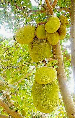 ↑ジャックフルーツの木<パラミツ> ↑赤いレンブー<チョンプー> ↑ジャックフルーツの木.....道端や民家の敷地内など至る所で見ることができ、あまりにも多過ぎて、珍しい光景ではない。 タイなど熱帯の国では、熱心に実を採取しようとする人も稀で、誰にも食べられず、下に落ちて腐って、アリや他の昆虫が集まってる実も結構、多い。.....香りもよく、味は、美味だけどね。...もったいない~