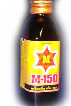 コンビニや商店などでは、日本のように滋養強壮ドリンクがたくさん売られていて人気は高い。 テレビでも滋養強壮ドリンクのCMは多い。 昔、リポビタンD(※タイでは、「リポー」と呼ばれている。)がタイで生産販売されるようになってから、他のドリンクメーカーも次から次に滋養強壮ドリンクの開発&販売をはじめるようになった。 有名なものは、「リポビタンD」をはじめ「ガッティンデーン」「M-150」などいろいろあるが、その中で、味・容量ともにお気に入りのドリンクがこれ! 「M-150」!..... アロ~イ!.....味がとにかくおいしい! コーラやジュースなどが置かれている売店などでは、大抵、ギンギンに冷やされて売っている。 日本でも販売してくれたらと思うのだが、とにかく味は気に入った! 暑い中、こうした栄養ドリンクを飲むと、元気が出る! 夏バテ防止にとにかくお勧め!... だけど、こうした栄養ドリンク.....男性イメージがついているせいか、タイでも女性がすすんで買って飲む人は少ない.....美味しいのにね。