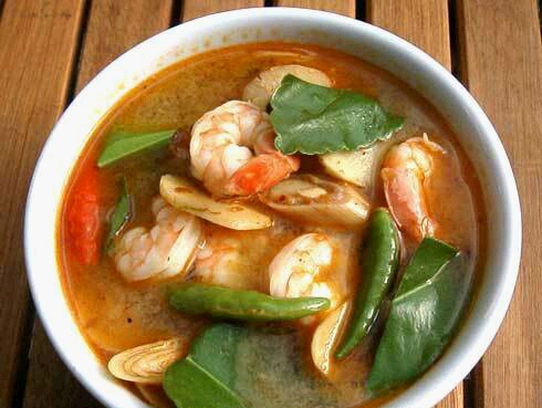 ↑ トムヤムクン ★ トムヤムクンの材料及び調味料 ★ 1. レモングラス 8. ナムプラー(魚醤) 2. コブミカンの葉 9. ブラックタイガー(皮を剥いておく)3. フクロタケ(又は、マッシュルーム) 10. チキン煮出し汁 4. 生の青トウガラシ 11. 100%レモン果汁(ナムマナオ)5. 生の赤トウガラシ 12. コリアンダー(パクチー) 6. 完熟トマト 13. エノキタケ(フクロタケの代わりに) 7. 水 14. チリオイル