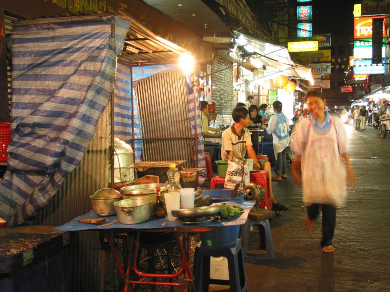 ↑バンコク・カオサンロード<KAOSAN-ROAD> バンコク・バーンラムプー地区にある「カオサンロード」は、世界中のバックパッカーが集うエリアで、格安航空券や旅の情報収集の基地となっている。 その他、インターネットカフェやレストランカフェ、そしてコピー音楽CDの露天が軒を並べ、朝からロックの音楽が鳴り響く活気あるエリアである。 これが1年365日、毎日だからね。 しかし、いろんな国からたくさんのバックパッカーが訪れるここカオサンは、....フィンランド、オランダ、カナダ、ニュージーランド、南アフリカ、アイルランド、フランス、オーストリア、ドイツ、韓国、シンガポール、アメリカ、スウェーデン......時々、ブラジルやメキシコなど中南米方面から来る人もいる。 ここを基点に、ある人は、インドやネパールを目指し、ある人は、シンガポール・マレーシア・バリ島を目指したり、そしてある人は、アフリカ方面に旅発つ。 古本屋もいくつかあり、日本の古本を置いている店もある。 日本のバックパッカーが残していったものだろうか。「地球の歩き方」の古本が日本円で約300~400円くらいで売っていた。 たくさんあったよ..... 「カオサン」には、多くの安宿が密集し、その値段も最近、少しアップし、100バーツ(300円/日)クラスの宿は、かなり少なくなってきている。 以前、100B台だった宿は、最近は、200B台に値上げられたところが多い。 また、この種の安宿(それでもゲストハウスという呼び方を使用しているところが多い。)は、たいてい「シャワールーム・トイレ」は廊下の端にあり、共同使用となっている。 部屋の中は、ベッド・ゴミ箱以外に何もなく、天井でカタカタ音をたてて「大型扇風機?」いや「プロペラ羽」が寂しく回っている空間である。 網戸が壊れているところが多く、蚊をはじめ家ダニ・ノミ・南京虫・北京虫?....は、確実におり、朝起きたときには、体の所々が赤くなってたりする。 ベッドの上の枕も「枕シーツ」だけ換えているためか、中のクッションは、それまで使った多くの人たちの汗と垢が染み付き、長年、「発酵」「腐敗」など数々の酸化還元反応を繰り返してきたためか、不思議な香りを醸し出している。 宿のオバちゃんに枕が臭いことを告げたことがあるが、オバちゃんがとっさに手渡してくれたのは、「消臭スプレー」であった。 この臨機応変さからすると、おそらく今まで何度か「枕」について苦情を言われたことがあるはずだ。 ...... それにしてもオバちゃんが手渡した「消臭スプレー」だが、効果あったよ! さすが「消臭スプレー」!..それより、「枕」.替えろよ!...こういう安宿は、枕の匂いだけではない、朝7時、8時ごろになると、時々、麻薬探知犬を連れた警察官数人が部屋を訪れてくることがある。 そのため、これから「カオサンロード」に泊まる機会のある方、カオサンでの宿は、できるだけ1泊500B以上のゲストハウスに泊まるようにしましょう。......