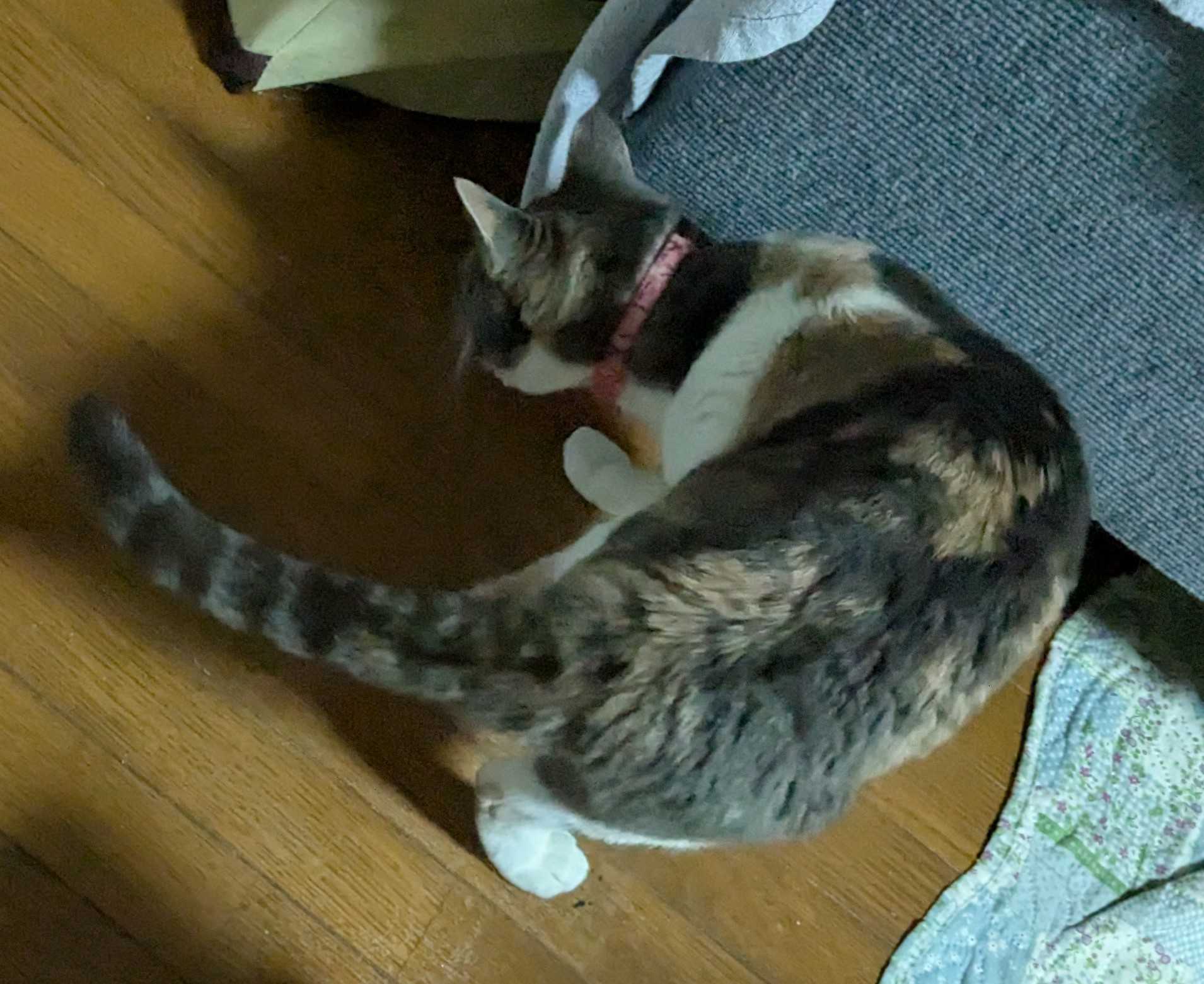 本日は、朝一で先ずキコを病院に預け、処置と検査を行っていただき、午後から、他の子の定期通院。ヒメは3ケ月に一度のSUBシステムのポート洗浄「決算のように、四半期に一回やって来ますニャ。」仰向けにされるのが嫌いなキコは、押さえている看護師さんの手を噛むので、ポート洗浄中は、エリザベスカラーを付けます。ラモは、一ケ月振りの検診破裂した肛門腺も、すっかり良くなり、瘡蓋も小さくなっています。「例によって、お父さんにバリカンで刈られてしまいましたニャ。」先生が、瘡蓋も綺麗に除去して下さりました。病院に行くときは、いつも、ギャースカ、ギャースカ鳴いて抗議するルナ新たに処方された薬がしっかり効いています。ミルも、順調です。帰宅したキコエリザベスカラーが汚れたので、洗っている間も、大人しく待っています。病院から、静脈点滴用の器材を借りて来ました。キコは、非常に厳しい状態で、血圧も低めな為、静脈点滴で昇圧剤を投与しています。ブログランキングに参加しています。このイラストを、ポチっとお願いします。にほんブログ村