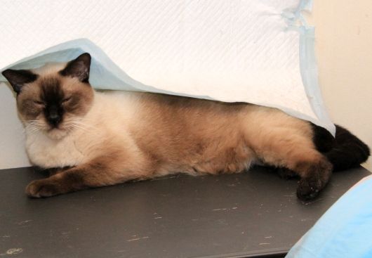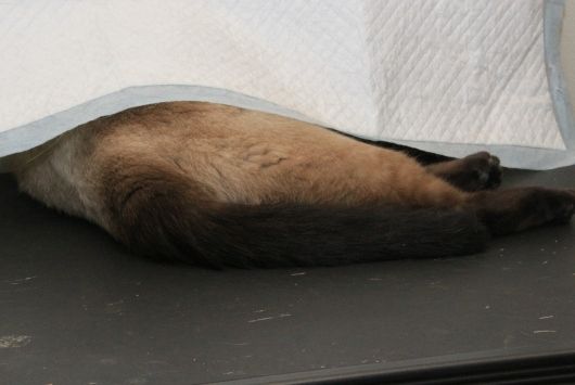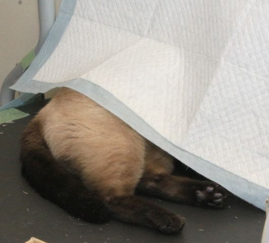 普通に寝れば良いのに、何故か、ペットシーツに頭だけ突っ込んで寝るのが、ガンちゃん的には正しい寝かたのようです。