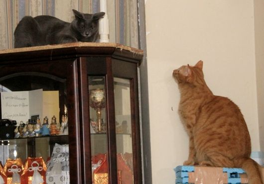 「上に行きたいけど、トコちゃん、怒らすと手が付けられなくなるからニャ。」