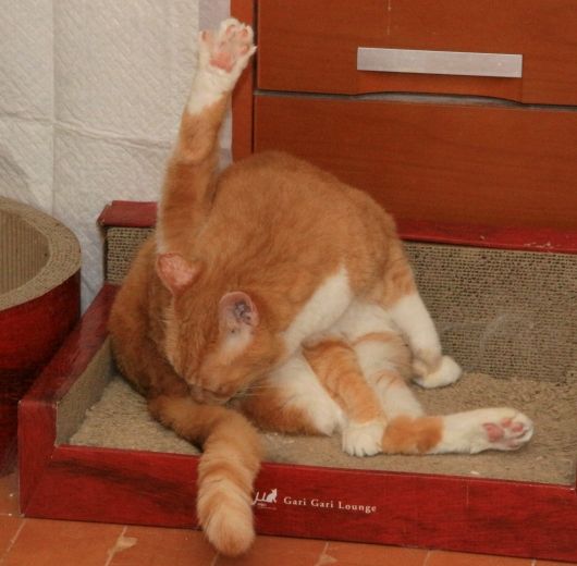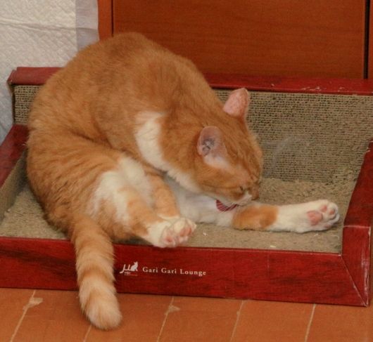 見ての通り、痛みが和らいだせいか、脚を伸ばして毛繕いしています。