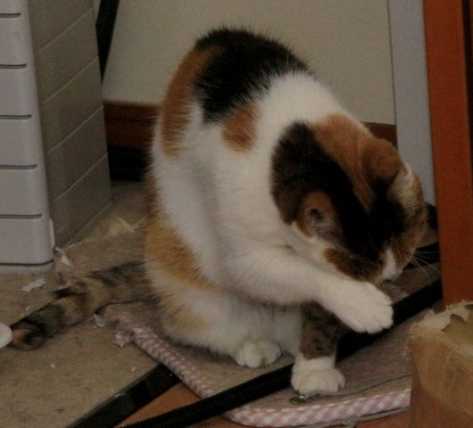 「次は、左手を舐めますニャ。」