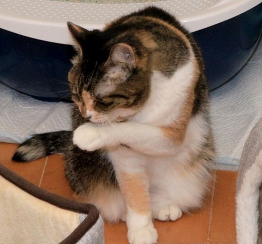 「先ず、右手を舐めますニャ。」