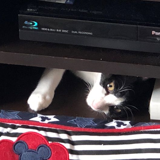 毎日暑い日が続いているので、涼しい場所を探して寝ているそうです。