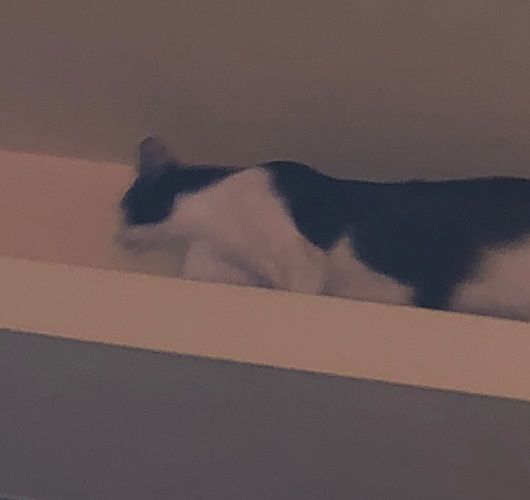 帰宅して、少しは、大人しくするかと思いきや、空ちゃんは、天井照明の梁部分に登ってウロウロ。