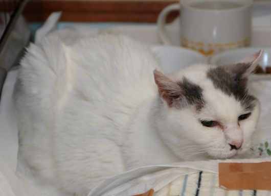 お婆ちゃん独特の可愛さがあり、お母さんが顎を撫でると嬉しそうにしています。