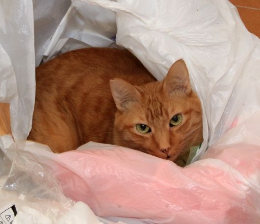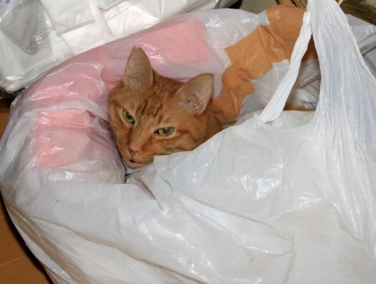 最近のロンのお気に入りの場所は、レジ袋の山。