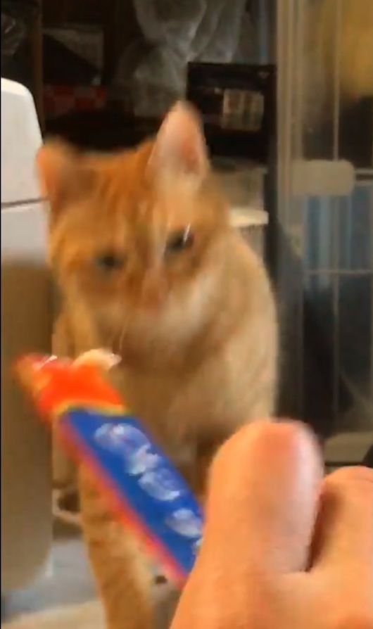 こちらは、TVコマーシャルのようなチュールに、まっしぐらの母猫