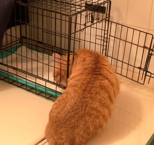 先住猫さんは、新しく来た二匹を威嚇する事も無く、むしろ、ゲージから出ておいでよ、と早く家に馴染むように説得しているそうです。