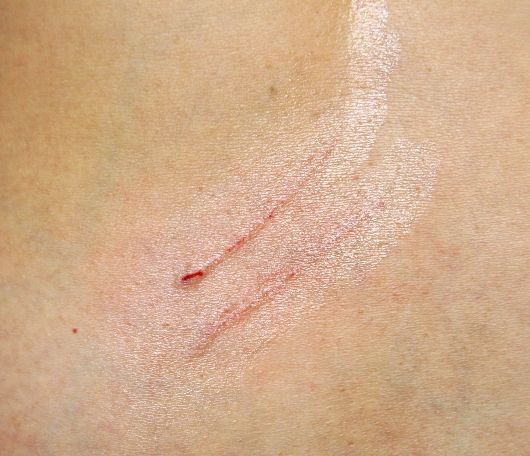 取り合えず、傷口に貴重なアルコール消毒液を吹きかけ、メンソレータムを塗りたくっておきました。