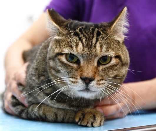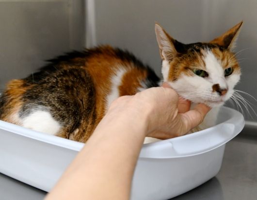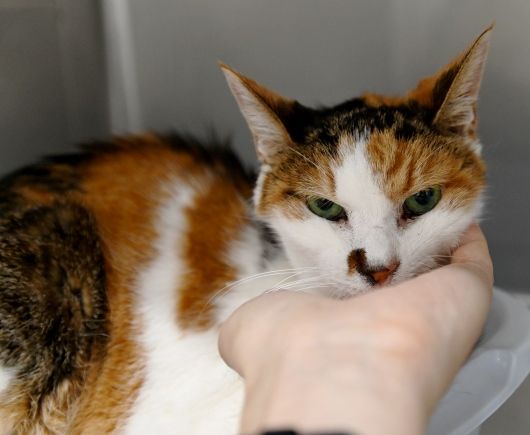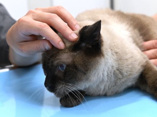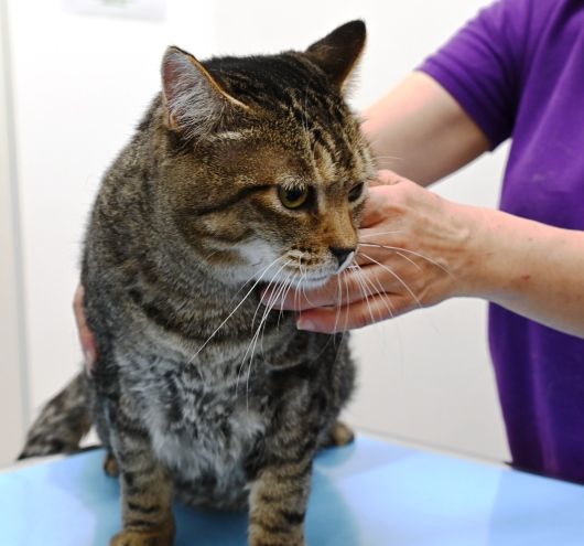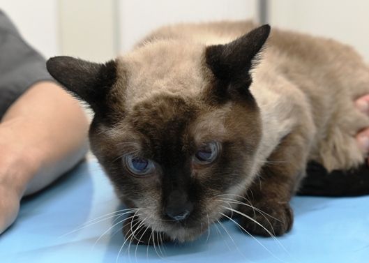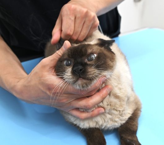 一通りチェックが終わり、先生に撫でられています。