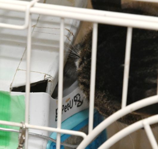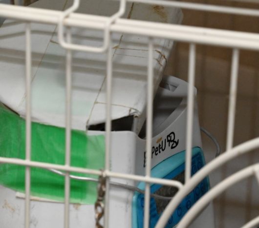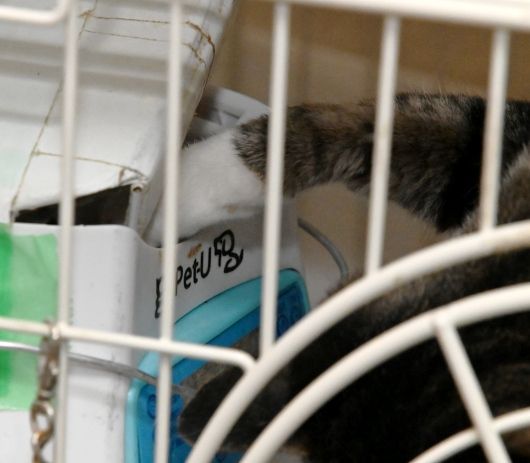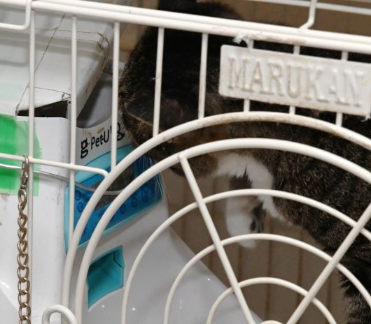 何と、自動給餌器の上の蓋を開けて、前脚を突っ込んで、ドライフードを受け皿に落として食べていました。