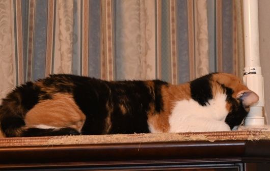 どうも、地震の時の転倒防止用の突っ張り棒に、顔や頭を押し付けずには、居られないようです。