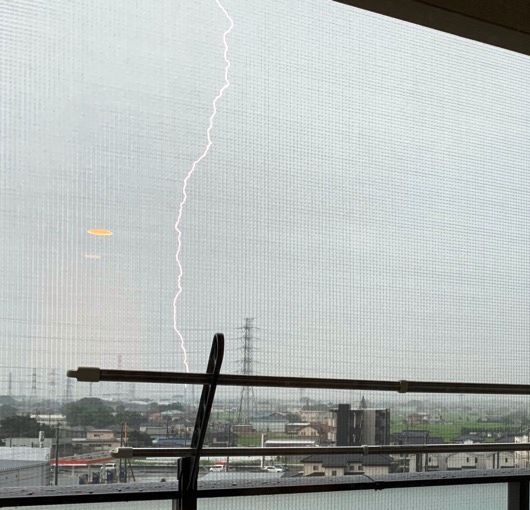 会社の同僚が在宅勤務中に自宅そばに落ちている雷を撮影して送って貰いました。