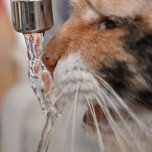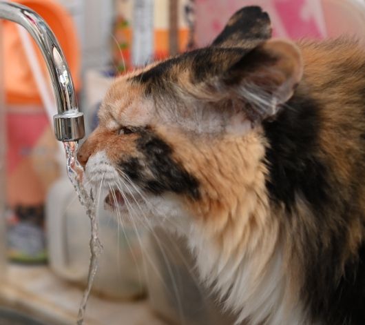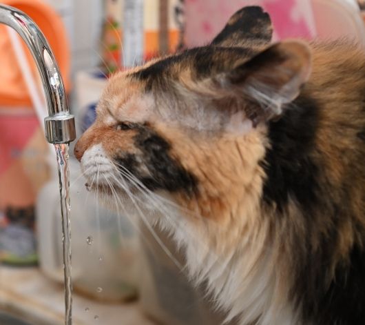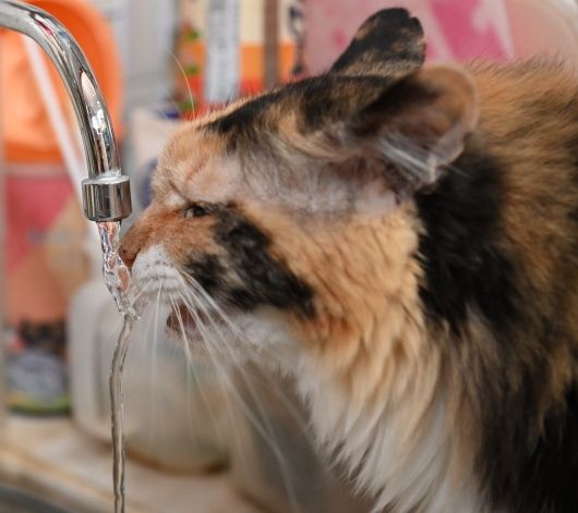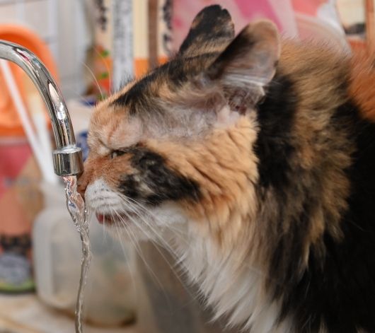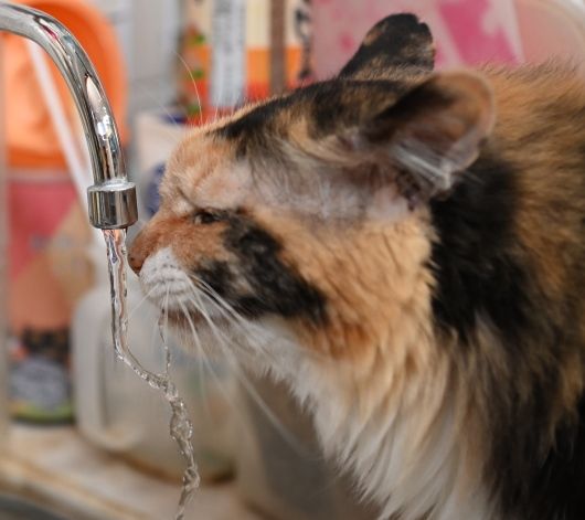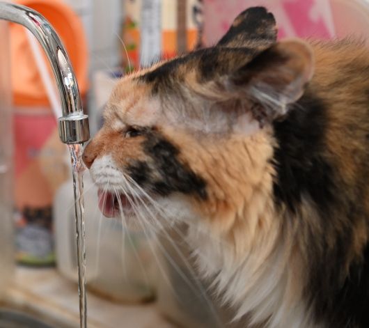 流れ落ちる水に鼻の頭を押し付ける事で、水の流れを変えて飲む、という方法。