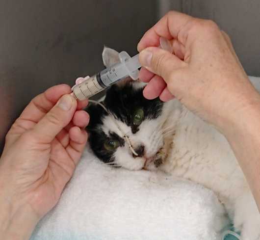 ちょうど流動食を鼻カテーテルで流し込む時間でしたので、看護師さんの代わりにお母さんが対応