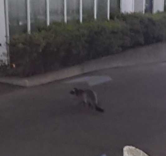 夜、近所の住宅街の道路を横切る姿と見つけ、猫かと思って近寄ったら、鼻筋に白い線。