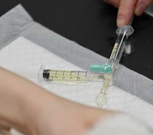 先ずは、ポートが埋め込まれている部分の毛を刈って、消毒