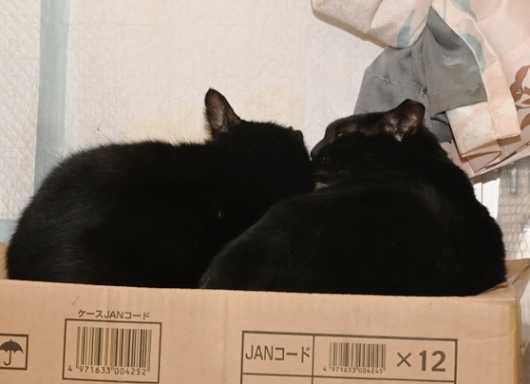 我が家の場合、何故か、自然と、黒猫は黒猫同士で引っ付く傾向にあります。