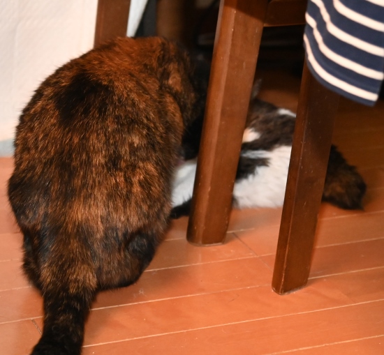 「ミサちゃんの毛繕いは、しつこいですニャ。」