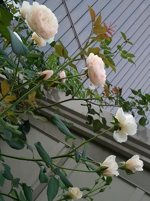 揺れた大文字焼きの薪が燃えて、お盆は終わっても、わが家のお盆休みはまだ続いています。そもそもわが家は仏教ではないので、お盆休みは単なる夏休みなのですが。先週の金曜日から風邪気味なのもあって、庭の手入れはほとんどさぼっています。ぐるっと様子だけ見て回りました。●ワイヤープランツは世話がかからず助かります。小さな椅子は運河朝市で、高校生が作ったものを500円で買い、色を塗りました。●寄せ植えそろそろ切り詰めなくては。あとは毎度おなじみの薔薇たちの、今朝の様子です。このあと、花がらだけは摘みました。この猛暑のなか、咲き続ける薔薇を見て、美人は薄命というのは嘘で、美人はきっと強くしたたかなのだと思いました。