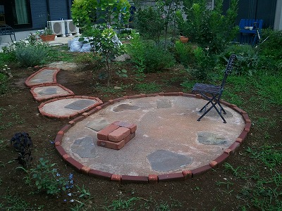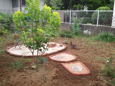 今日も、昨日に引き続き曇り空です。2泊していた次男の後輩Y君は、海(平塚)に行く約束があるとかで朝ひとりで出て行きました。神奈川の予報は27℃、すぼめた傘マークまでついています。「風邪ひかないようにね」と、送り出しました。 それから、昨日やりかけた「まさ王」仕事の仕上げ。ドーンと大きなおたまじゃくし出現水平も取らず、行き当たりばったりにステップを作ったら巨大おたまじゃくしみたいになりました。この後、尻尾をもう少し伸ばして、テラスに繋げようと思います。いつもアップしている花はどこにあるの?って感じの殺風景な庭です。ここを何とかすれば、ずいぶん庭らしくなると思うのですが…。 草取りしていた手元にカタツムリ発見。1.5cmくらいの赤ちゃんカタツムリですが、しっかりツノを出して状況把握しようとしています。ほかの場所に移して、草取りを続けました。こちらはスモークツリーにいた蜂?虻?マタギみたいな毛皮を肩に羽織っています。