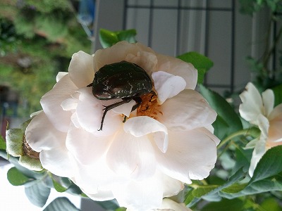 洗濯物を取り込もうとしたら、何かがポロンと落ちました。コガネムシ。ひっくり返ったままなので、体勢を直してあげたら、またコロン。きっと、今夜ご臨終でしょう。