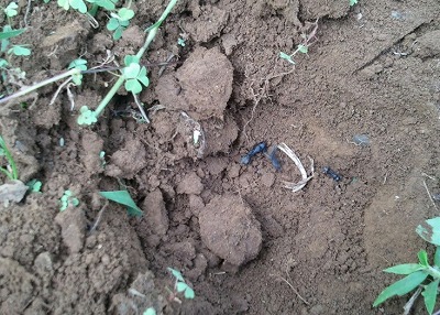 飛び飛びの作業で作っていたまさ王で固めたステップが完成しました。名付けて「おたまじゃくし」。雑草の生育を抑えて、管理面積を少しでも減らすのが目的ですが、偶然愛嬌のある形に仕上がって、面白がっている自分がいます。間に緑を配し、花を植えれば、かなり庭らしくなるのではと思っています。また1年位かかるかもしれませんが。 コガネムシが朝ごはん中去年植えたローズマリーがものすごく茂っているのですが、花はたった2つ。