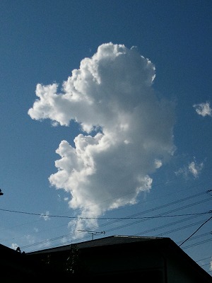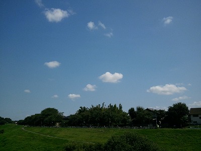 昨日の午後の空です。いろんな形の雲が ぷっかり ぷっかり。どう見ても真夏です。《庭》23日のこの薔薇ですが昨日はそして今日このあと白い部分が広がって紅白の薔薇になります。 物干しのバスタオルの上にバッタ。カマキリにガン見されてしまいました。妊婦かな…。 久し振りに庭で汗をかきました。暑い日は汗をかいた方が体調がいいみたいです。