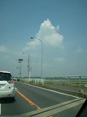 昨日は、こんな空のもと橋を渡り、茨城県守谷のジョイフル本田ガーデンセンターに。目的はいつも使用しているものより大きいレンガ。重いので、ただ積んだだけでも、よほどの地震でない限り崩れないでしょう。これを、おたまじゃくしの頭部に積んでみました。3個×4段で12個。そこにアスターと千日紅の寄せ植えを。頭部とステップの間には、はやりのセダム、ステファニーゴールドというのを試しに5株購入して植えました。元気に育って、隙間を緑でうめてくれる予定です。フェンスの向こうが素晴らしく緑なのは、お隣が空き家で草ぼうぼうなだけです。因みに寄せ植えの向こうに見える緑の塊が、トマトの森です。 さて、今日も虫に出会いました。草取りで掘り起こされ、あわてて頭を地面に突っこんだコガネムシ。ちょっと土をよけてみたら、今度は死んだふり。これ以上かまっていると熱中症になりそうなので、せっかくの演技ですが、失礼して家に入りました。